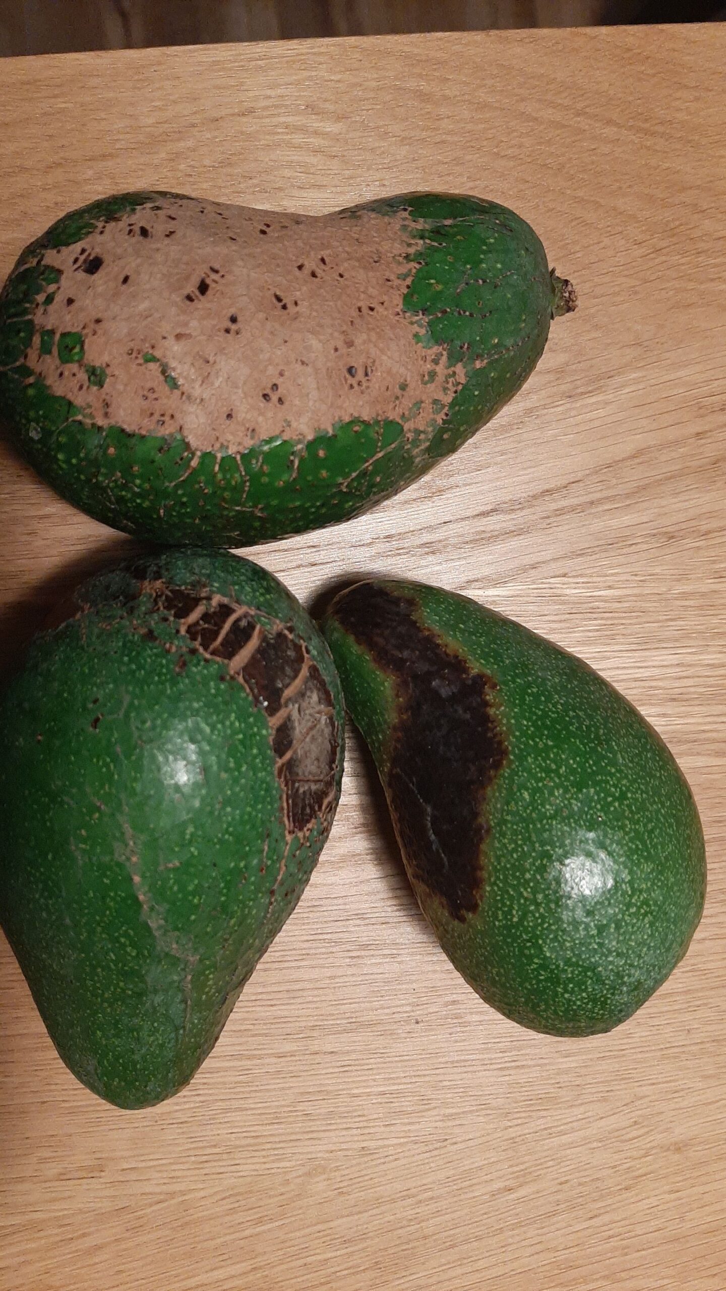 -Los aguacates maduros de la variedad bacon ceden un poco al presionarlos ligeramente.